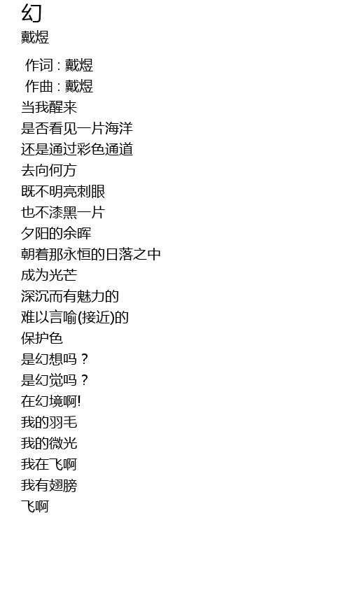 | [00:01.000] | 作曲 : 戴煜 |