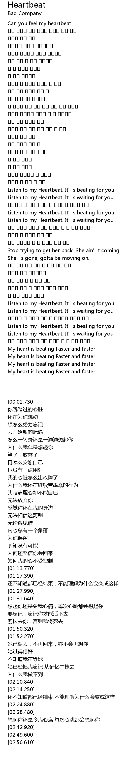 | [02:56.610] | My heart is beating Faster and faster |