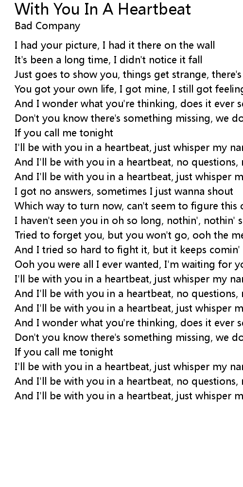 And I'll be with you in a heartbeat, just whisper my, just whisper my name