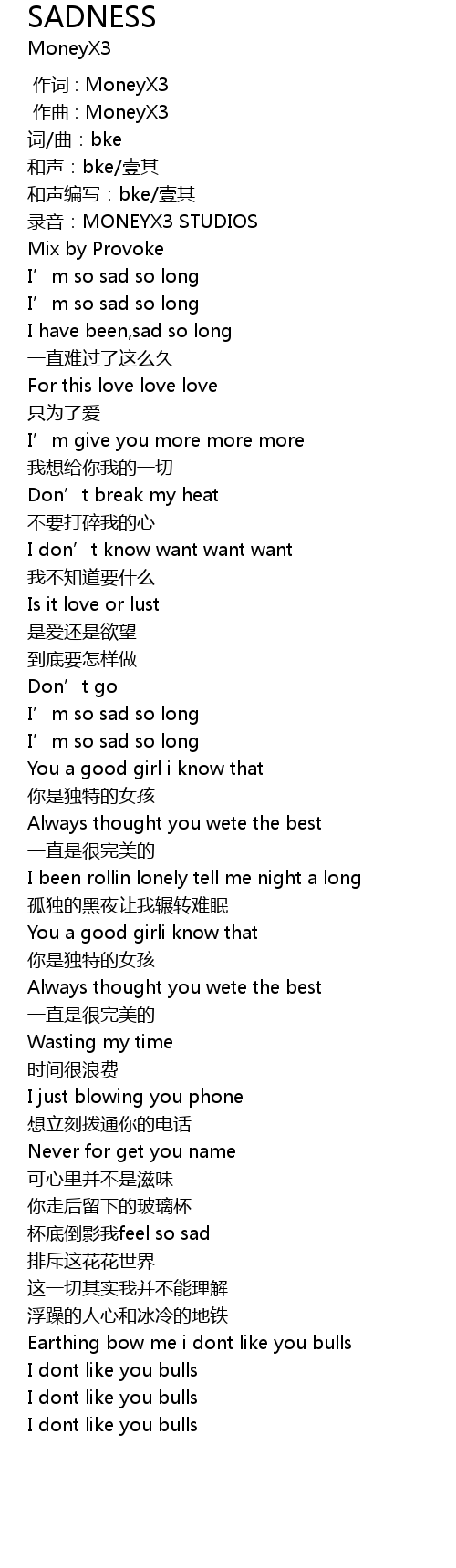 | [00:00.000] | 作词 : MoneyX3 |