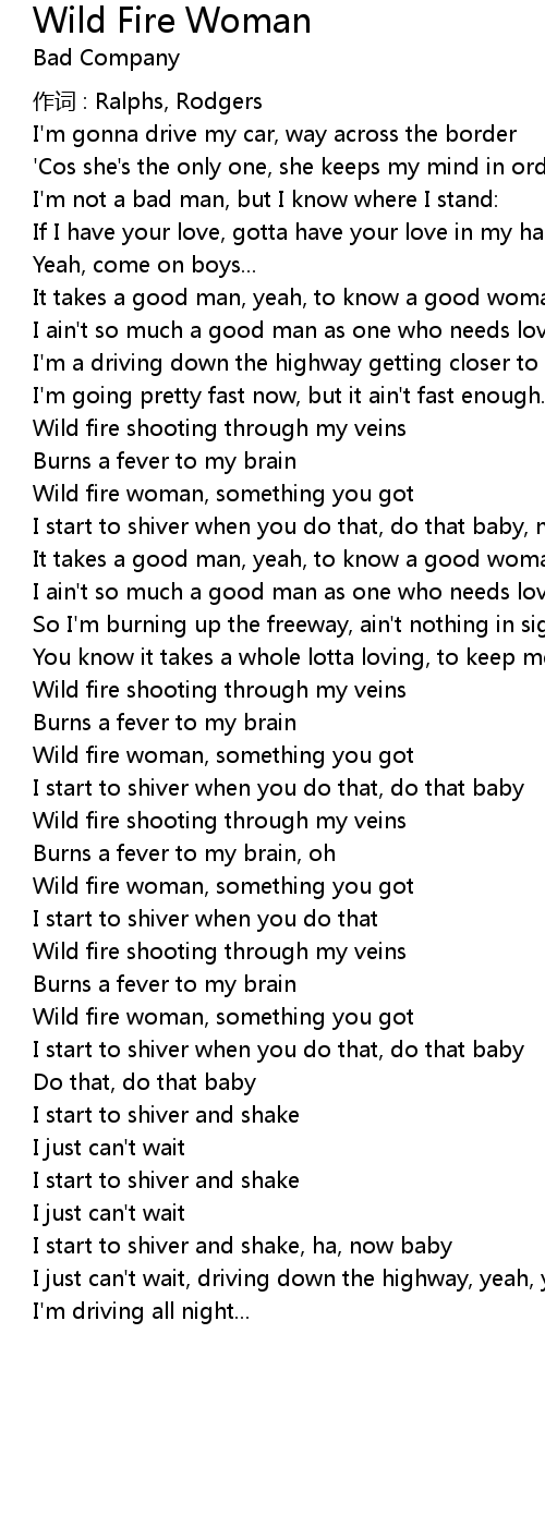 | Wild fire woman, something you got | |