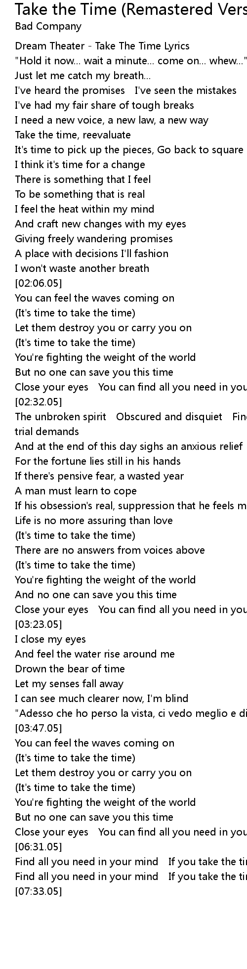 | [00:00.05] | Dream Theater Take The Time Lyrics |