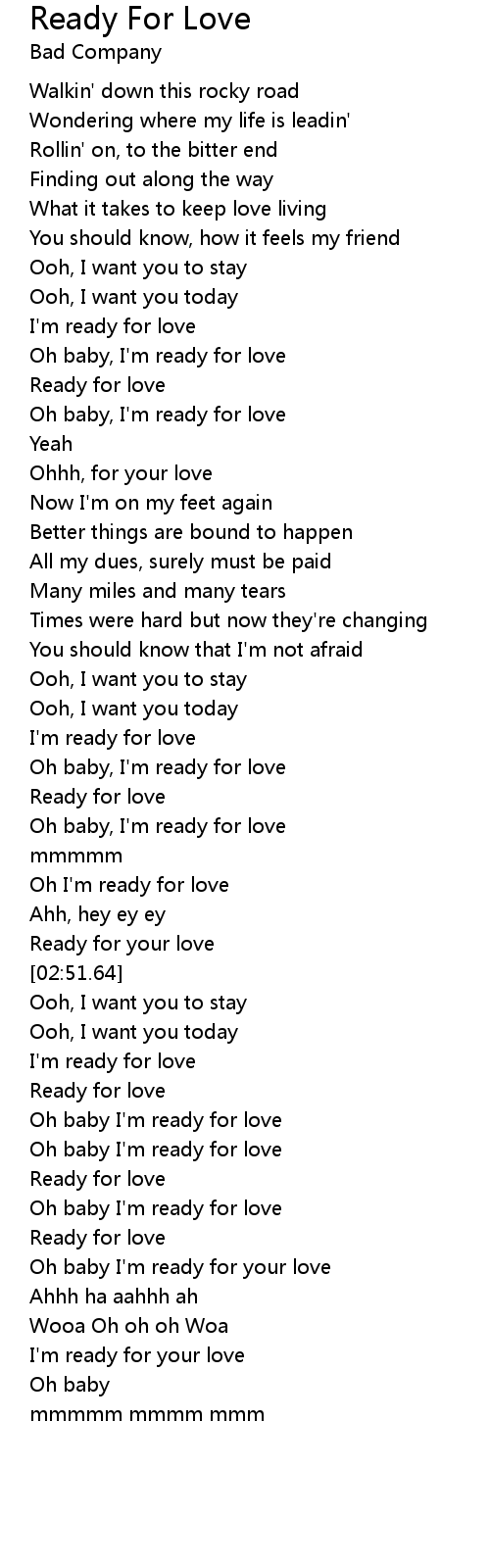 Oh baby I'm ready for love |