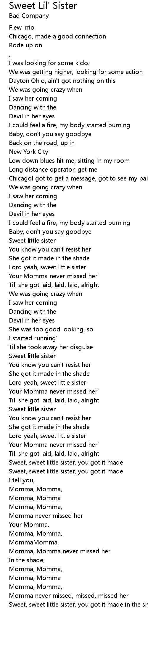 Lord yeah, sweet little sister |