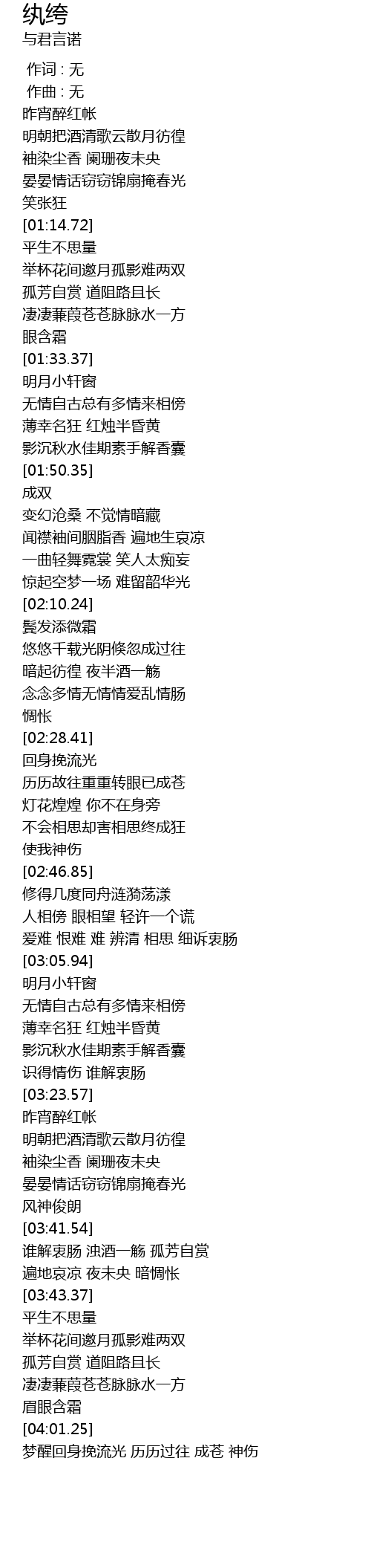| [03:42.52] | shuí jiě zhōng cháng zhuó jiǔ yī shāng gū fāng zì shǎng |