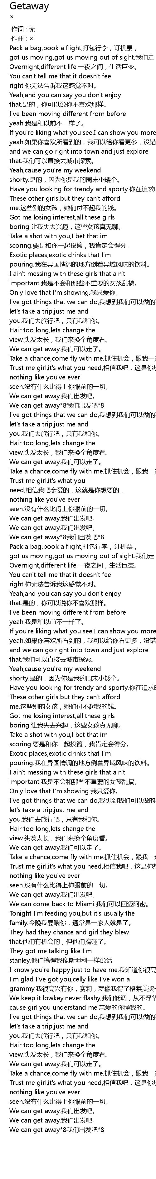 | [03:40.334] | We can get away*8我们出发吧*8 |