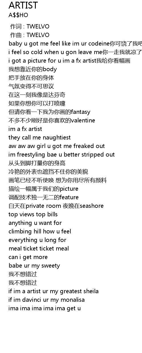 | [01:50.464] | if im a artist ur my greatest sheila |