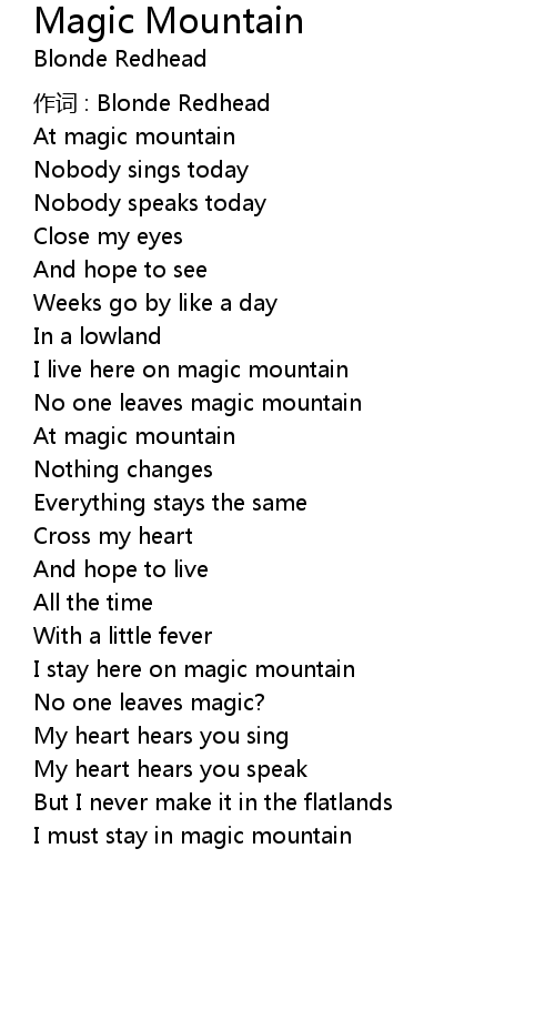 | I stay here on magic mountain | |