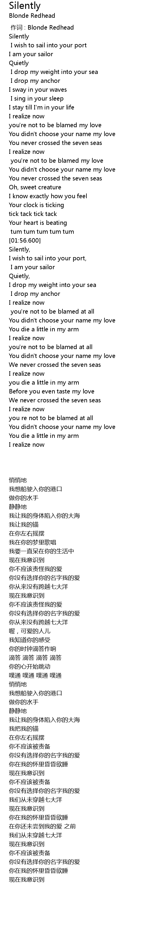 | [00:00.00] | zuò cí : Blonde Redhead |