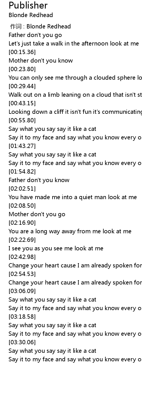 | [00:00.00] | 作词 : Blonde Redhead |