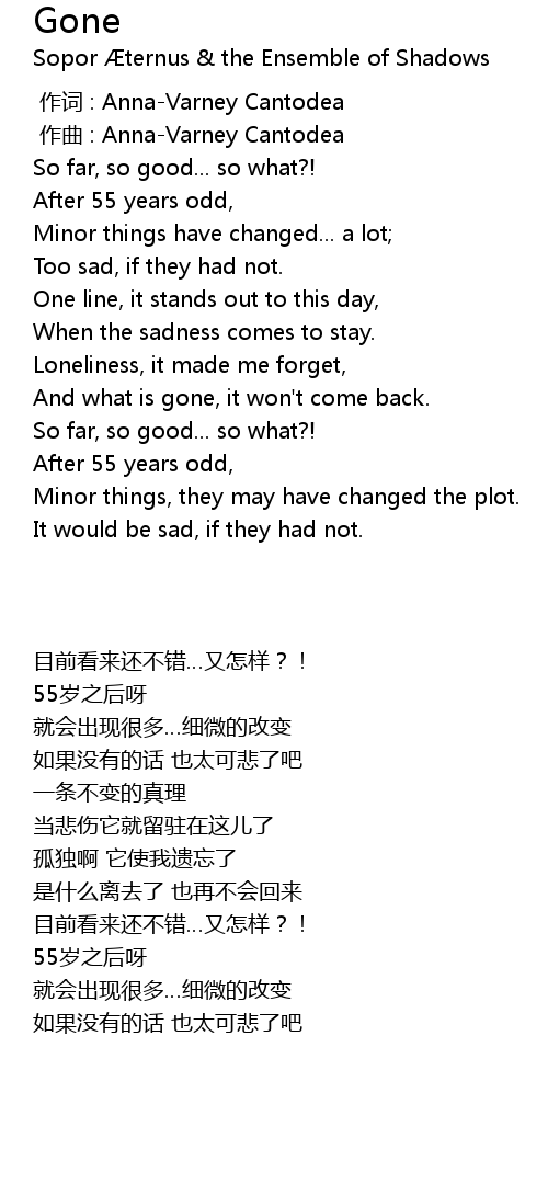 | [00:00.000] | 作词 : Anna-Varney Cantodea |