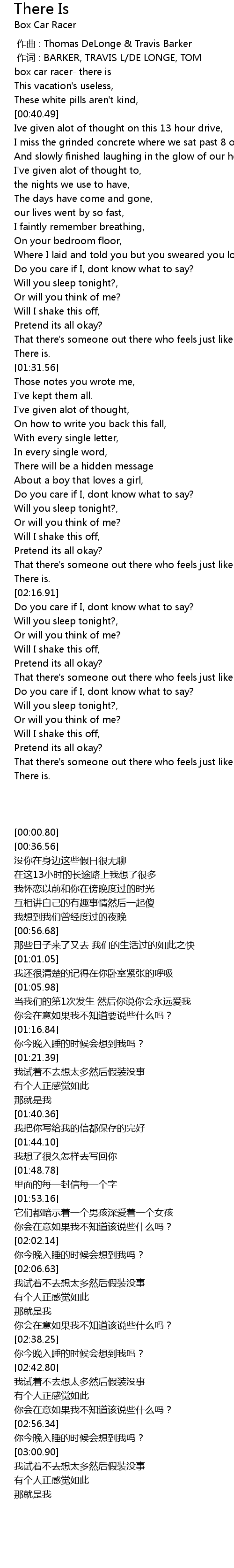 | [00:00.80] | box car racer- there is |