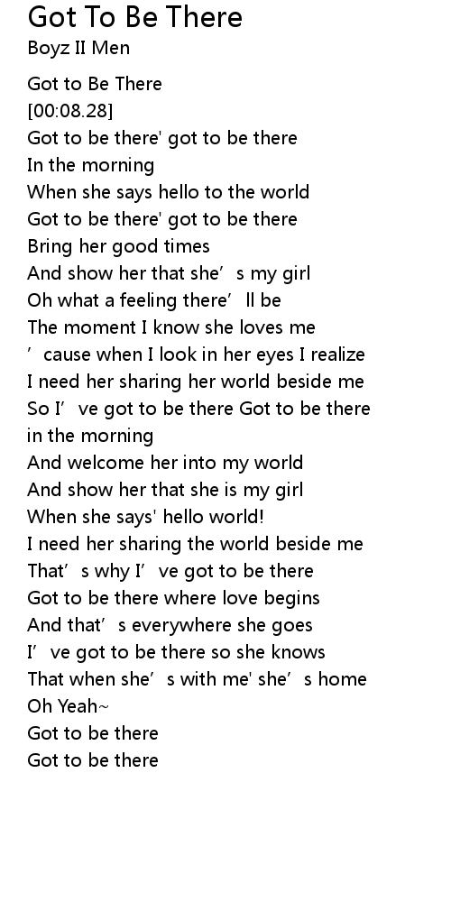 | [01:16.01] | So I' ve got to be there Got to be there |