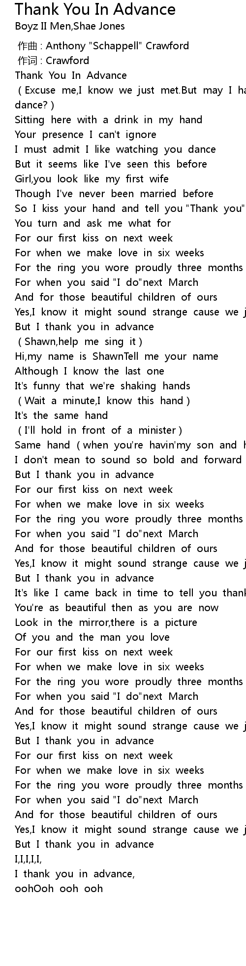| 歌曲 | Thank You In Advance |