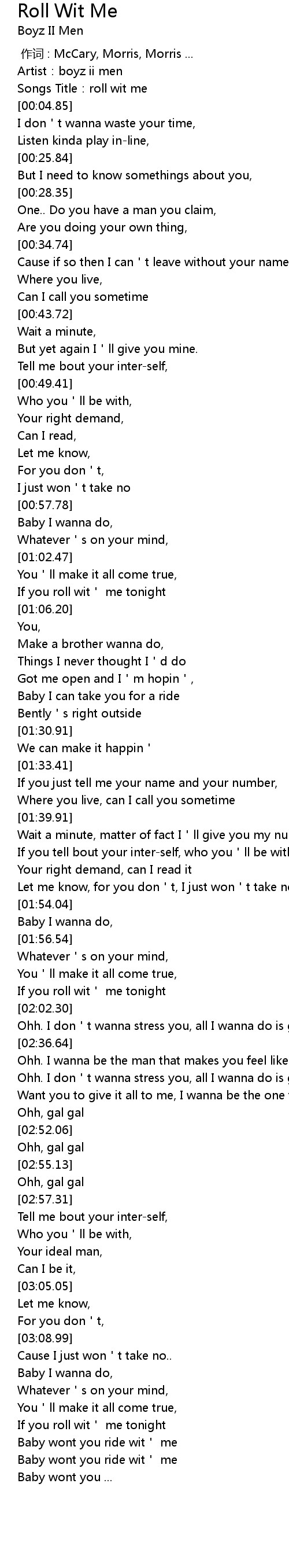 | [00:02.97] | Songs Title:roll wit me |