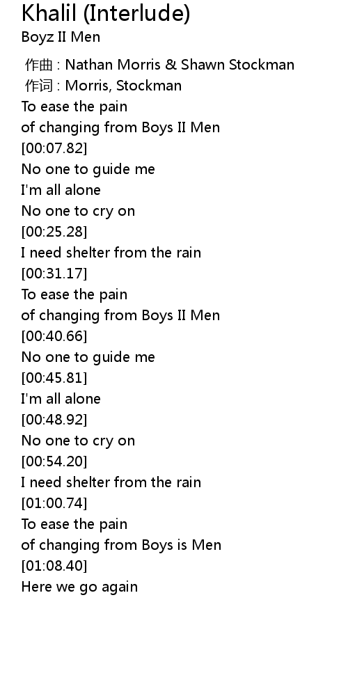 | [00:00.00] | 作曲 : Nathan Morris & Shawn Stockman |