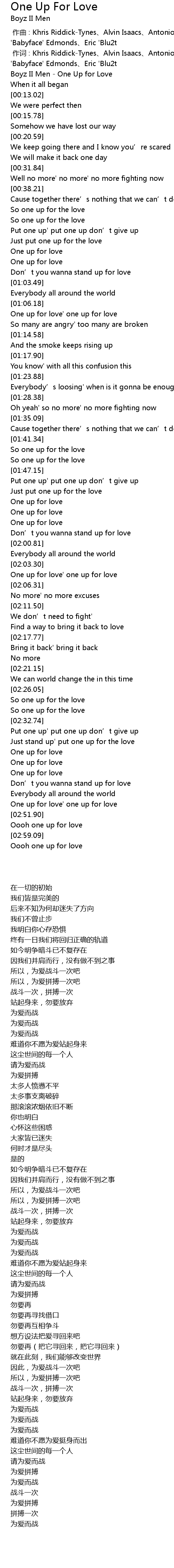 | [00:01.00] | zuo ci : Khris RiddickTynes Alvin Isaacs Antonio Dixon Kenneth ' Babyface' Edmonds Eric ' Blu2t |