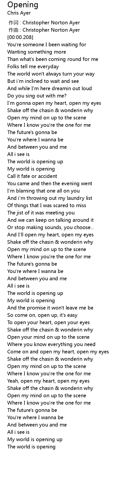 | [00:46.893] | My world is opening |