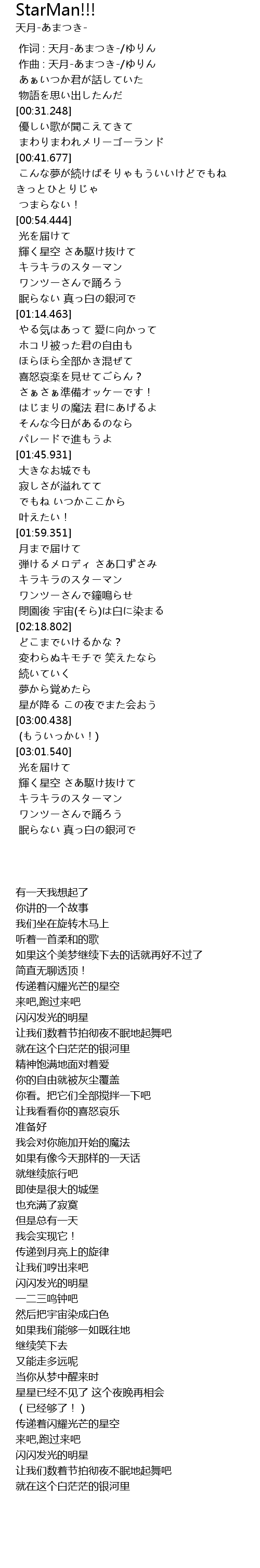| [03:06.166] | 輝く星空 さあ駆け抜けて |
