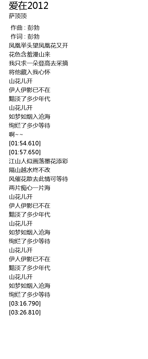 | [01:58.860] | jiāng shān rén shì huà luò mò huā tiān cǎi |