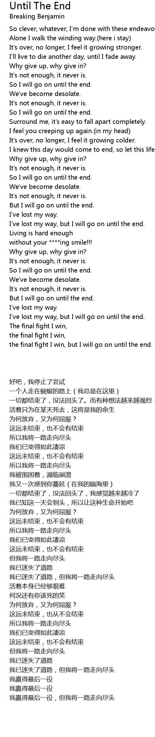 I've lost my way, but I will go on until the end. |
