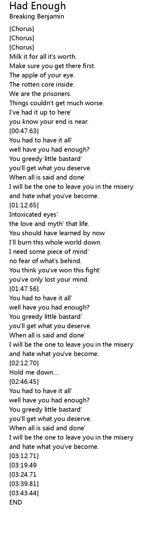 well have you had enough? |