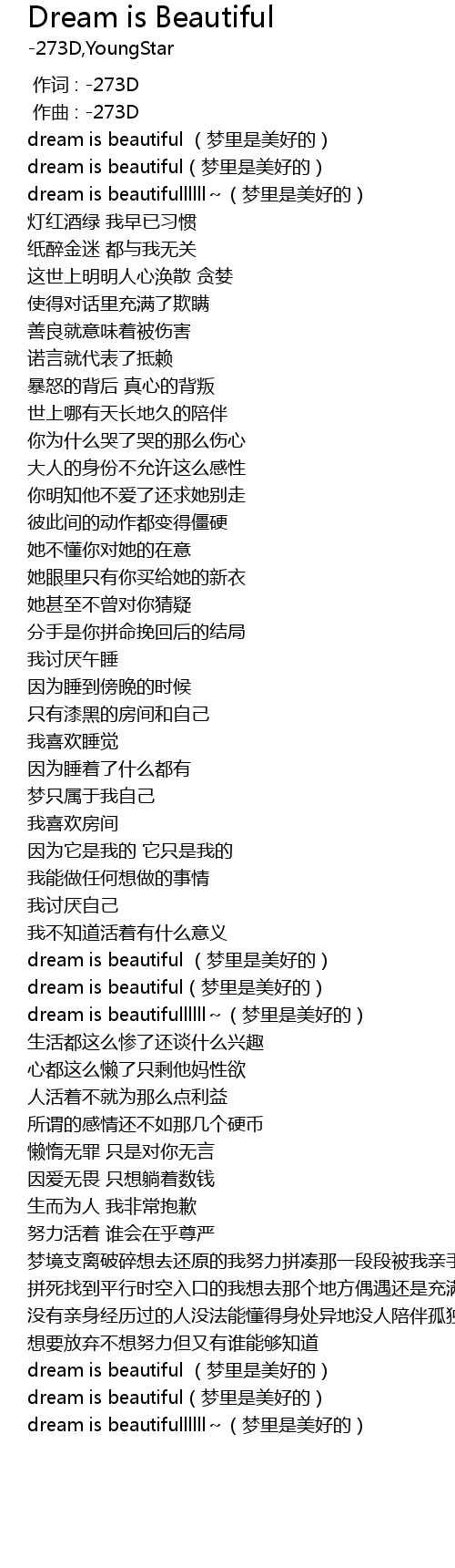 | [02:51.695] | dream is beautiful(梦里是美好的) |