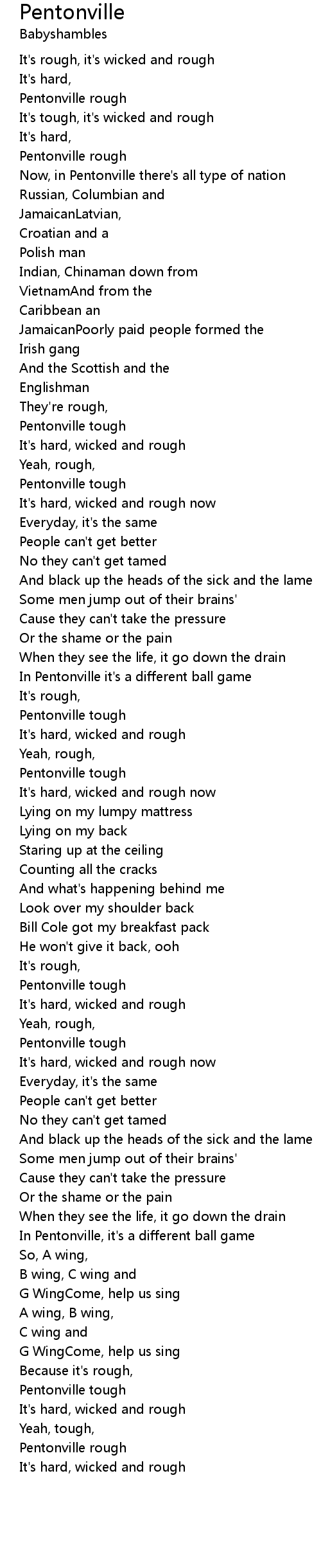 Now, in Pentonville there's all type of nation |
