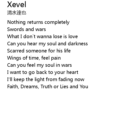 | [01:43.874] | Faith, Dreams, Truth or Lies and You |