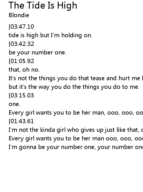 | [03:57.12][03:47.10][03:37.42][03:27.50][03:00.34][01:58.22][01:16.01][00:36.00] | The tide is high but I'm holding on. |