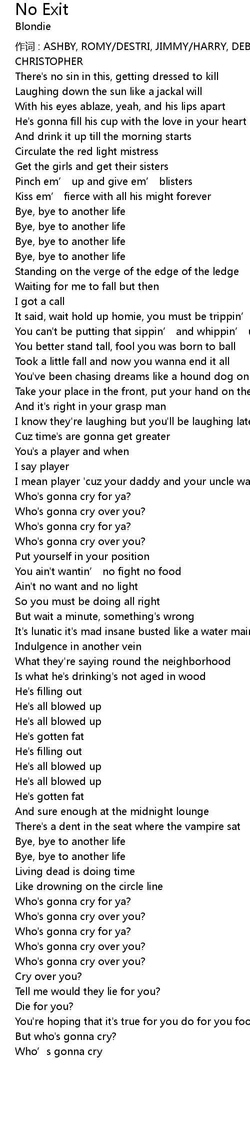 | Who' s gonna cry for ya? | |