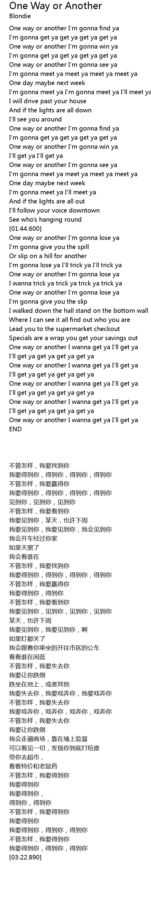 | [03:01.380] | One way or another I wanna get ya I' ll get ya |