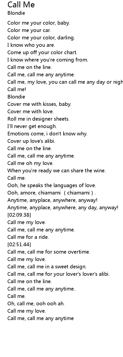 | [03:22.72] | Call me, call me any anytime |
