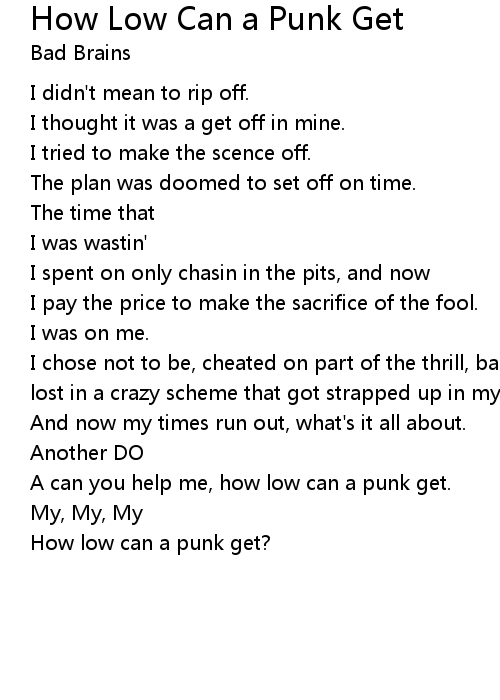 A can you help me, how low can a punk get. |