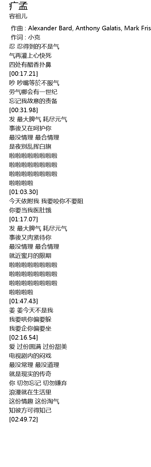 | [01:18.68] | 发 最大脾气 耗尽元气 |
