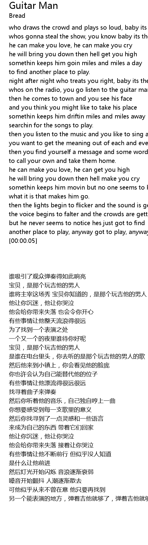 night after night who treats you right, baby its the guitar man |