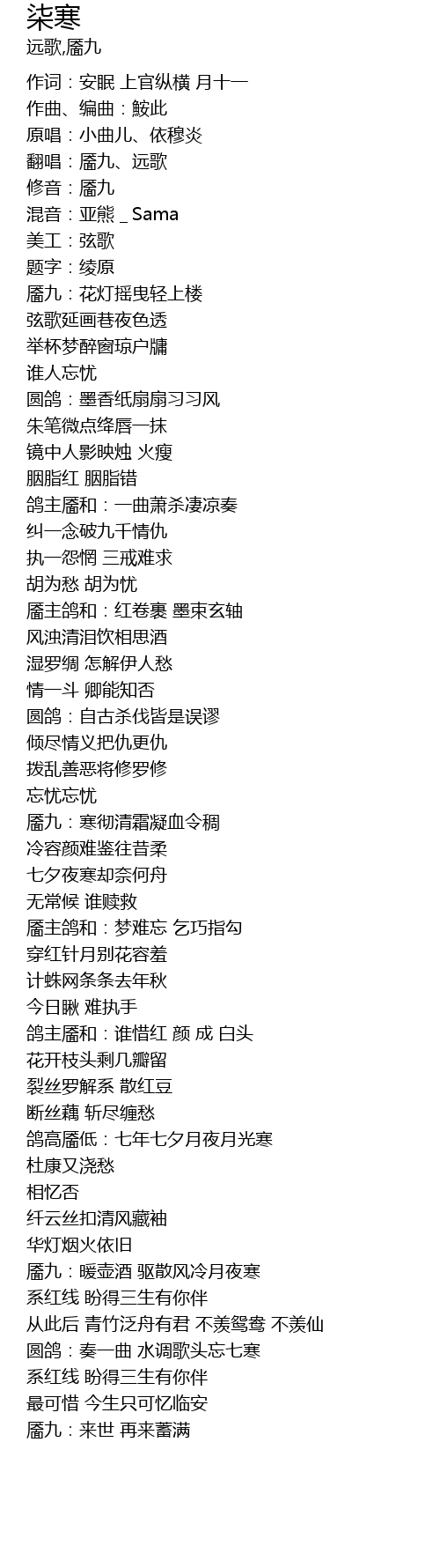 | [04:24.492] | yuán gē: zòu yī qǔ shuǐ diào gē tóu wàng qī hán |