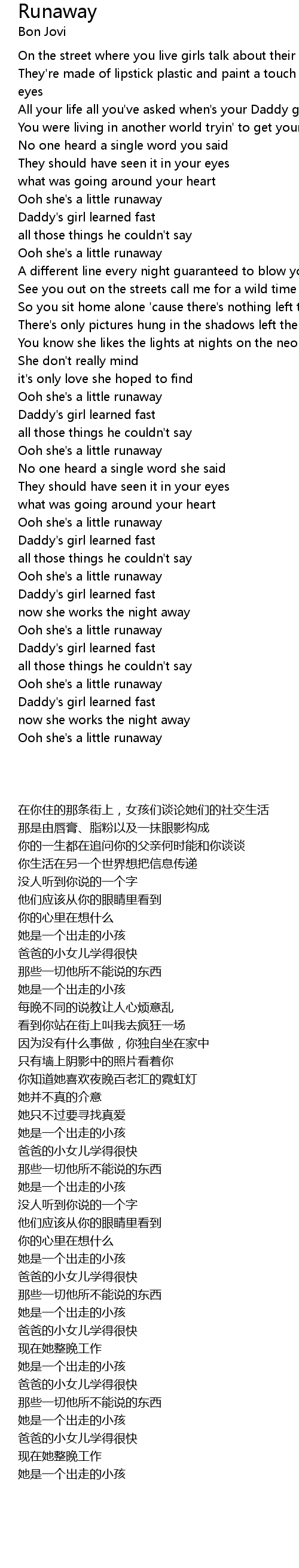 Ooh she's a little runaway |