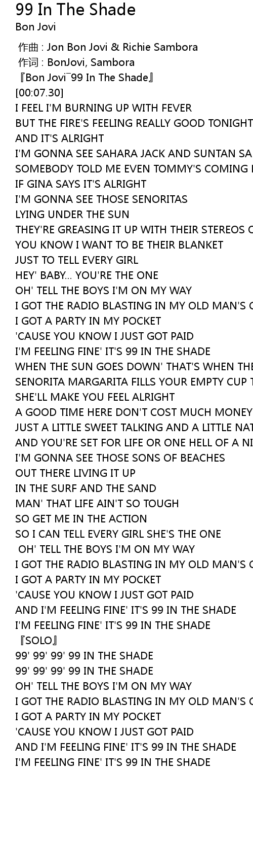| [00:00.00] | Bon Jovi 99 In The Shade |