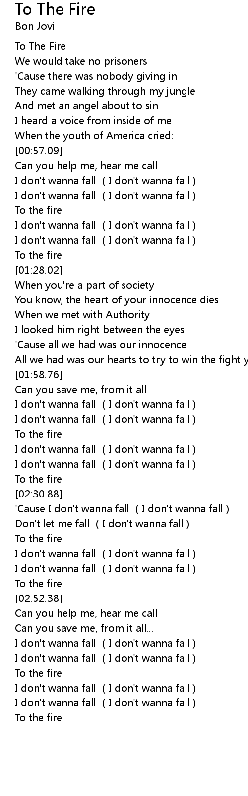 | [02:31.61] | ' Cause I don' t wanna fall I don' t wanna fall |