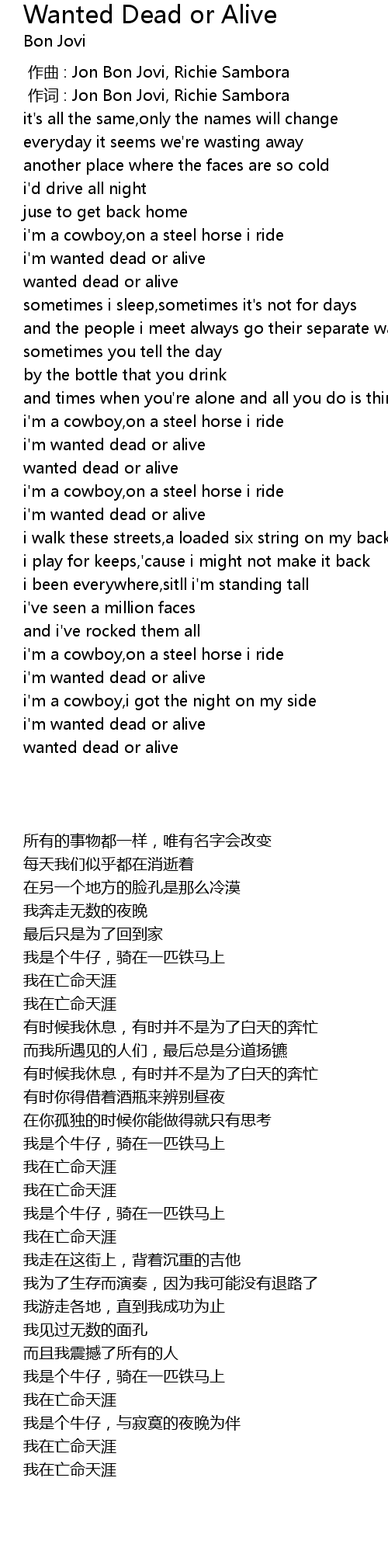 | [02:18.330] | i'm wanted dead or alive |