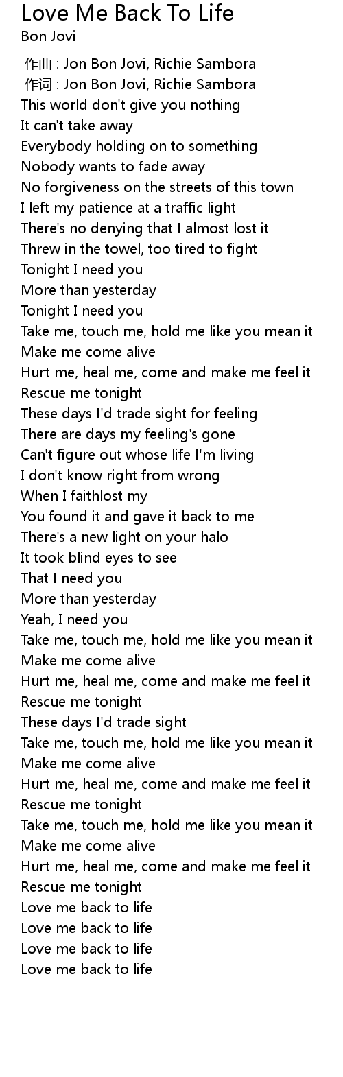 | [00:01.00] | zuò cí : Jon Bon Jovi, Richie Sambora |