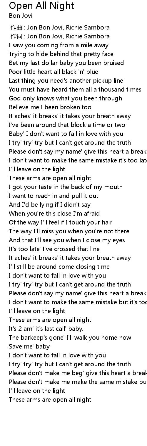 | [00:00.00] | 作曲 : Jon Bon Jovi, Richie Sambora |