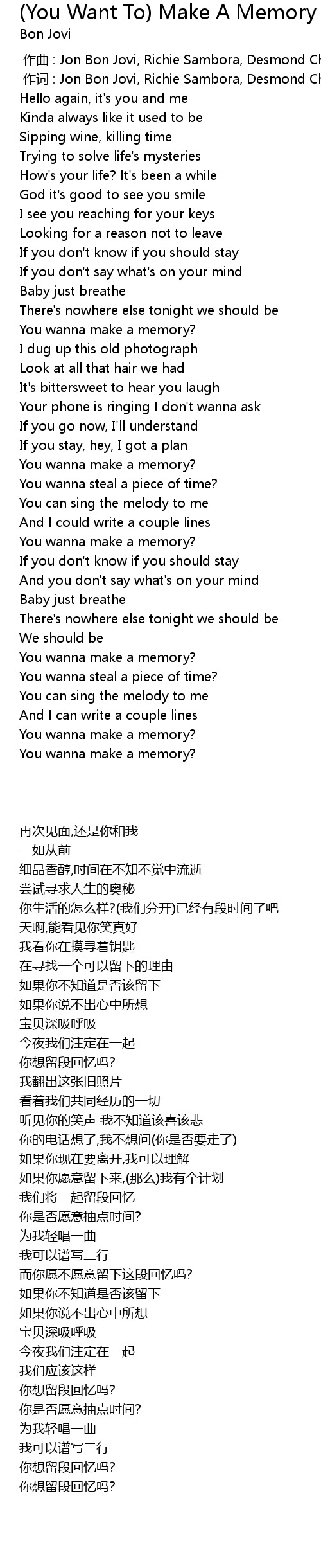 | [00:01.00] | zuò cí : Jon Bon Jovi, Richie Sambora, Desmond Child |