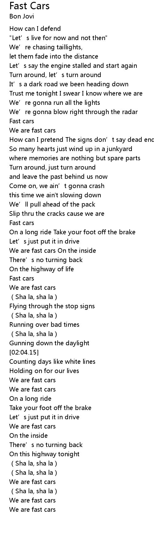 | [02:48.22] | We are fast cars |