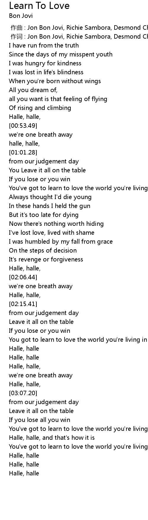 | [00:00.00] | 作曲 : Jon Bon Jovi, Richie Sambora, Desmond Child |