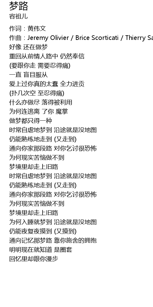 | 歌曲 | 梦路 |