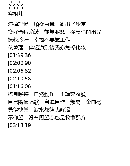 | [01:35.65] | 自己隨便唱歌 自彈自作 無需上金曲榜 |