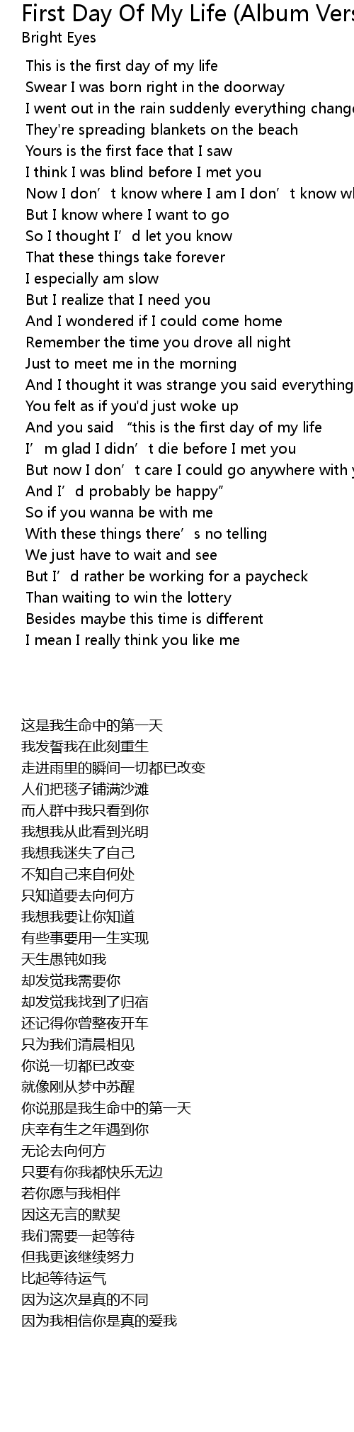 | [01:46.000] | 你说那是我生命中的第一天 |
