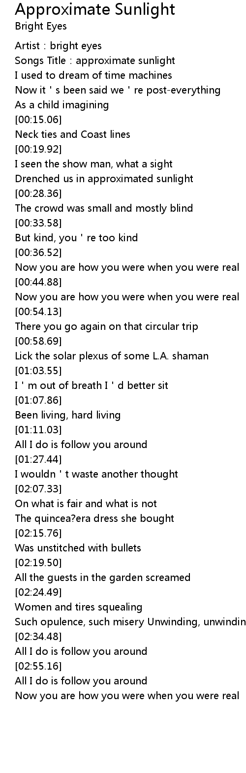 | [00:02.95] | Songs Title: approximate sunlight |